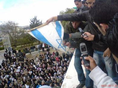 وعرض التلفزيون صورا للطلاب وهم يهتفون "اسرائيل قاتلة".