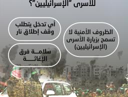 من جانبه، أعلن الناطق باسم كتائب القسام، أبو عبيدة، أمس الأحد، استعداد الحركة للتجاوب مع أي طلب من الصليب الأحمر لإدخال الطعام والدواء إلى الأسرى الإسرائيليين، مشترطًا فتح الممرات الإنسانية بشكل دائم لوصول المساعدات إلى جميع سكان القطاع، ووقف الطلعات الجوية الإسرائيلية أثناء تسليم الطرود.