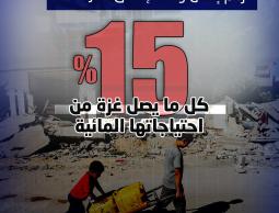 وأوضح "الإعلامي الحكومي" أن قطاع غزة يحتاج يوميًا إلى أكثر من 600 شاحنة مساعدات لتلبية الحد الأدنى من الاحتياجات، وسط انهيار شبه كامل للبنية التحتية بفعل الحرب المستمرة، وتدهور القدرة الشرائية للسكان، حيث لا يستطيع أكثر من 95% منهم شراء السلع حتى عند توفرها.