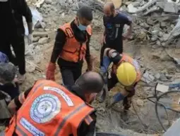 وفي المحافظة الوسطى، تمكنت الطواقم من انتشال شهدين نتيجة استهداف مجموعة من المواطنين بالقرب من مخبز الحاج بالنصيرات.