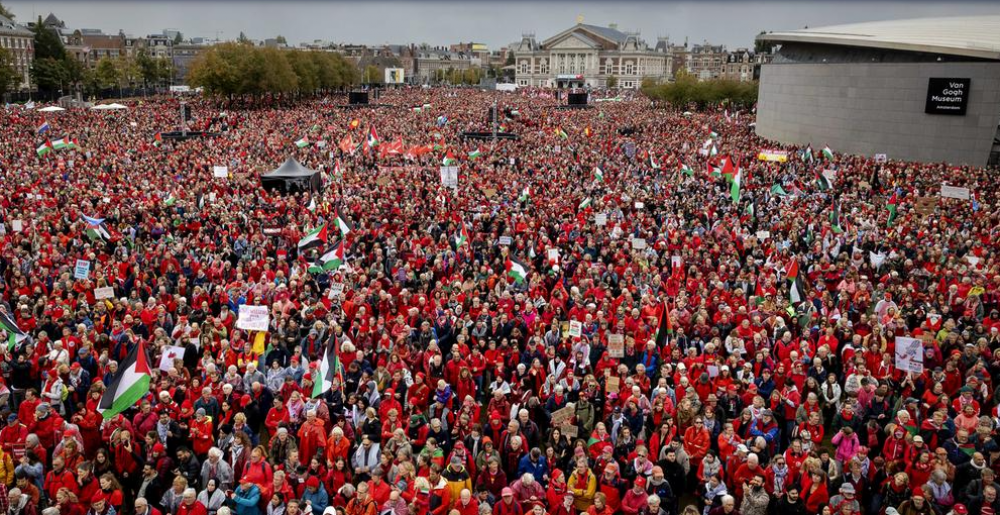 خرج مئات الآلاف بتظاهرة حاشدة في العاصمة الهولندية، أمستردام، مساء يوم الأحد، مطالبين حكومة بلادهم باتخاذ موقف أكثر صرامة تجاه حرب الإبادة الإسرائيلية ضد قطاع غزة.