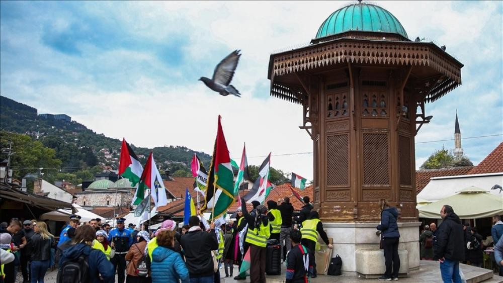 وذكرت مصادر محلية أن مئات المتظاهرين البوسنيين تجمعوا أمام نافورة "سبيل" الشهيرة في سوق "باش تشارشي" التاريخي وسط سراييفو، حاملين أعلام فلسطين.