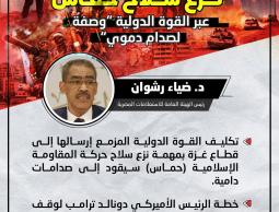 في موقف مصري حازم، حذر رئيس الهيئة العامة للاستعلامات الدكتور ضياء رشوان من أن تكليف القوة الدولية المزمع إرسالها إلى قطاع غزة بمهمة نزع سلاح حركة المقاومة الإسلامية (حماس) سيقود إلى صدامات دامية واشتباكات مسلحة، مؤكدًا أن أي دولة عاقلة لن تقبل المشاركة في قوة تواجه المقاومة الفلسطينية.