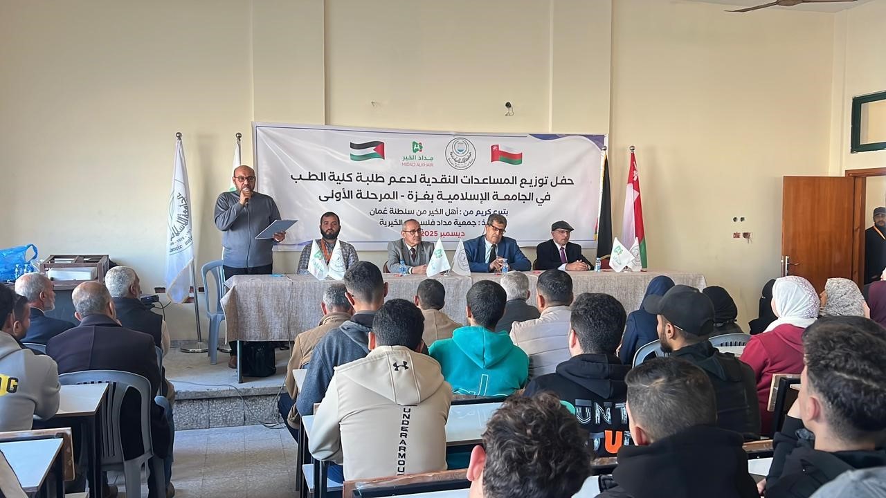 ويأتي هذا الحفل تتويجًا لتوقيع مذكرة تفاهم واتفاقية دعم مالي بين الجامعة الإسلامية بغزة وجمعية مداد فلسطين الخيرية – حملة مداد الخير، بدعم وتبرع كريم من أهل الخير في سلطنة عُمان، وذلك في إطار المسؤولية الوطنية والمجتمعية المشتركة، واستجابةً للظروف الاستثنائية التي يعيشها قطاع غزة، وحرصًا على صون العملية التعليمية، لا سيما في القطاع الطبي الذي أثبت أنه خط الدفاع الأول عن حياة الإنسان وكرامته.