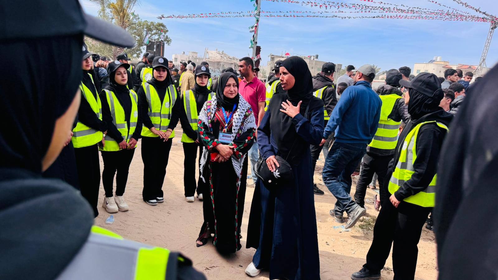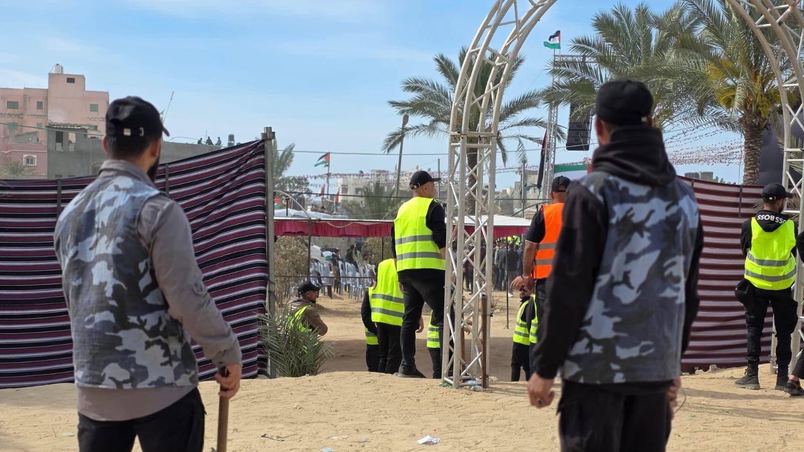 أمّنت الإدارات الشُرطية بوزارة الداخلية والأمن الوطني في المحافظة الوسطى، فعاليات العرس الجماعي “ثوب الفرح 2”، الذي نُظم مساء اليوم الجمعة، في مدينة دير البلح بدعم وتنظيم من مؤسسات خيرية، وبمشاركة 300 عريس وعروس، وسط أجواء احتفالية.