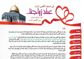 ذكرت صحيفة "معاريف" العبرية أن الجماعة الإسلامية فى الداخل المحتل دعت مؤخرا المسلمين لعقد قرانهم داخل المسجد الأقصى وإقامة حفل زفاف صغير داخل باحة المسجد يحضر فيه أقارب العروسين وذويهم.