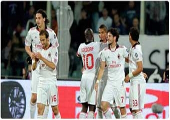 وضرب ميلان، الذي استعاد خدمات مهاجمه السويدي زلاتان إبراهيموفيتش بعد انتهاء إيقافه لمباراتين لكنه لم ينعم بذلك كثيراً لأنه طرد في أواخر المباراة.