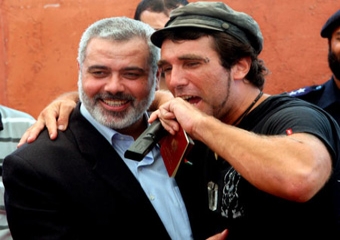 اريغوني يعانق رئيس الوزراء اسماعيل هنية