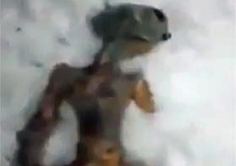يظهر شريط فيديو صُوّر في سيبيريا وبُث على موقع «يوتيوب» جثة قيل إنها لمخلوق فضائي، ولهذا السبب صار قبلة الملايين على الإنترنت حول العالم.صُور الفيديو في بلدة إيكوتسك الروسية القريبة من بحيرة بايكال. ويطهر فيه أحد أبناء البلدة وهو يقود المصوّر وسط الجليد الى بقعة على حافة أجمة ويشير فيها الى ما يقول إنها جثة المخلوق الفضائي.