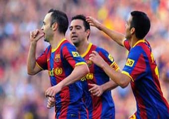 أصبح برشلونة على بعد نقطة فقط من الظفر باللقب للمرة الثالثة على التوالي والحادي والعشرين في تاريخه وذلك بعد فوزه على جاره اسبانيول 2-صفر الأحد في المرحلة الخامسة والثلاثين من الدوري الإسباني لكرة القدم.