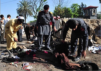 كما أفادت بأن الحادث وقع عندما فجر انتحاريان نفسيهما في سيارات تقل متدربين من القوات شبه العسكرية بمنطقة شب قدر قرب بيشاور شمالي غربي باكستان.