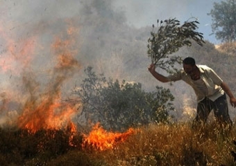 مغتصبون يضرمون النار بأراض زراعية في نابلس