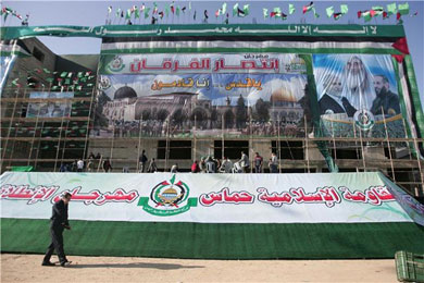 وتستخدم حماس هذا المناسبة لتوجيه رسائل سياسية للمجتمع الدولي الذي يرفض التعامل مع الحركة الإسلامية رغم صعودها إلى سد الحكم بعد فوزها في الانتخابات التشريعية في كانون الثاني يناير 2006.