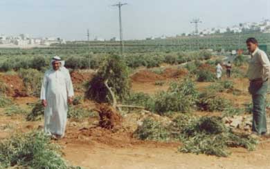 أرض الحاج أبو محمد عبد العال لها نصيب من هذا التجريف، الذي قال:" مساحة أرضي حوالي عشرون دونما كانت مزروعة بمئات الأشجار المثمرة والحمضيات"، مبينا أنه حزن كثيرا عندما دمرتها جرافات الاحتلال في الحرب الأخيرة على غزة.