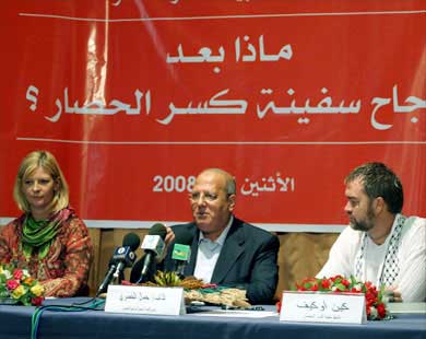 رحب النائب جمال الخضري رئيس اللجنة الشعبية لمواجهة الحصار، بتظاهر المئات من أنصار الحركات اليسارية ودعاة السلام الإسرائيليين وسط تل أبيب احتجاجا على حصار غزة وفي الذكرى الأولى للحرب.