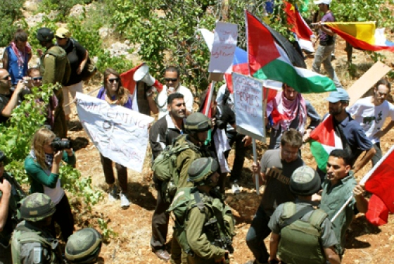 وأضاف أبو ماريا بأن الجنود اعتدوا بالضرب على المشاركين بالهراوات البلاستيكية واعتقلوا اثنين من المتضامنين الأجانب.