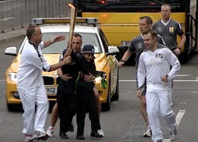 وقالت متحدثة باسم الشرطة: "الساعة 8.55 بتوقيت غرينيتش، حاول رجل على ما يبدو أخذ الشعلة الأولمبية من يدي أحد حامليها".