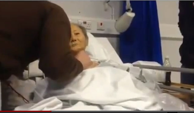 المواطن الصيني يظهر في الفيديو وهو يردد الشهادتين بصعوبة خلف بعض المحيطين به، والذين يبدون سعادة بالغة بإسلام الرجل فيهنئونه ويقبلونه قبل أن يعاودوا وضع أجهزة التنفس الصناعي على وجهه.