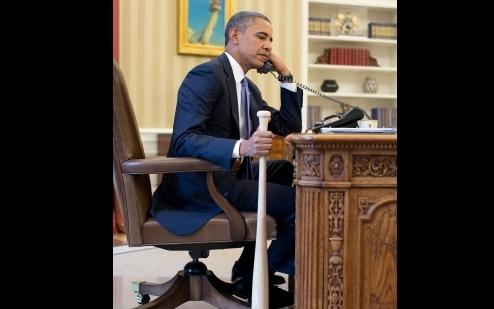أثارت صورة للرئيس الأمريكي باراك اوباما التقطت له وهو يهاتف رئيس الوزراء التركي رجب طيب أردوغان استياء في تركيا، حيث ظهر اوباما وهو جالس وراء مكتبه وممسكا بعصا البيسبول.
