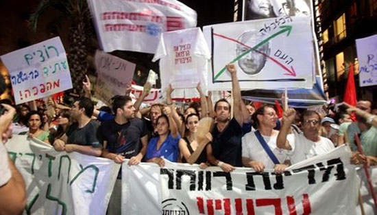 تظاهر أكثر من خمسة آلاف شخص في تل أبيب، مساء أمس السبت، ضد سياسة "نتنياهو الاقتصادية والاجتماعية" في أعقاب قرار الحكومة الرامي إلى رفع الأسعار وزيادة الضرائب.