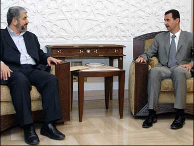 قال عضو المكتب السياسي عزّت الرشق بأن وفداً من الحركة برئاسة رئيس مكتبها السياسي خالد مشعل التقى اليوم السبت الرئيس السوري الدكتور بشار الأسد، حيث تم التشاور والتنسيق حول الوضع الفلسطيني وتطوراته في ضوء انسداد طريق التسوية، وتواصل العدوان الصهيوني والاستيطان، ومخططات تهويد القدس وتقسيم المسجد الأقصى، إضافة على استمرار الحصار الظالم على أهلنا في غزة.