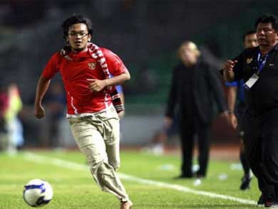 رحب مسؤولو كرة القدم في إندونيسيا بمشجع إندونيسي نزل أرض الملعب أثناء مباراة منتخب بلاده ضد نظيره العماني هذا الأسبوع في التصفيات المؤهلة لكأس آسيا 2011 محاولا تسجيل هدف ووصفوه بالبطل.