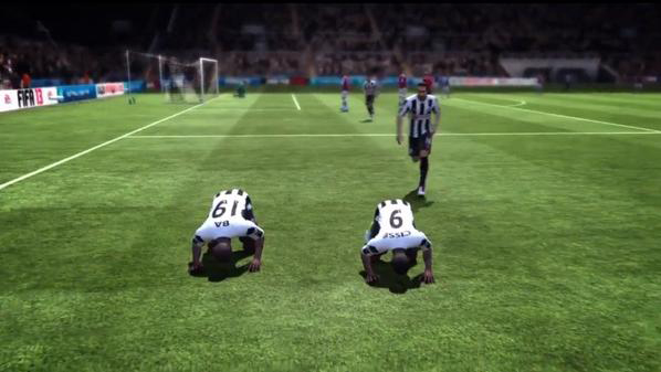 اعتمدت الشركة المطورة للعبة "فيفا" السجود طريقة جديدة للاحتفال بتسجيل الأهداف في نسخة العام 2013 من لعبة كرة القدم الأكثر شهرة.
