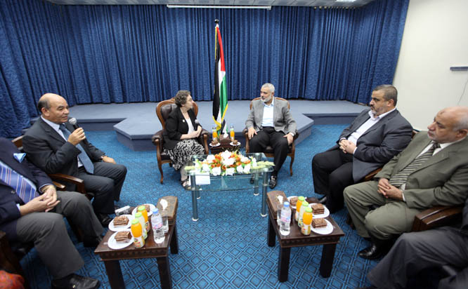 التقى رئيس الوزراء الفلسطيني إسماعيل هنية صباح الخميس بوفد من اتحاد المحاميين الديمقراطيين الدوليين برئاسة السيدة جيني ميرور، حيث عبر عن ترحيبه بهم باسم الحكومة والشعب الفلسطيني.