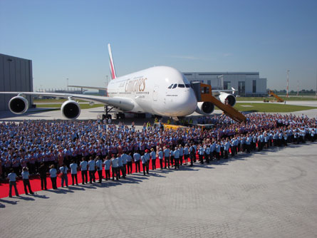 وتملك طيران الإمارات أكبر أسطول من طائرات (أي 380) في العالم، مع 31 طائرة تم تسليمها وطلبية من 59 طائرة أخرى. ويقوم هذا الأسطول بتسيير رحلات إلى 21 وجهة حالياً.