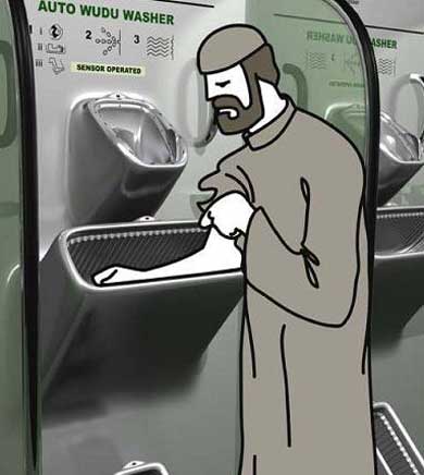 أعلن باحثون عن ابتكار جهاز إلكتروني تلقائي جديد للوضوء هو الأول من نوعه، وأطلق رئيس الوزراء الماليزي نجيب عبد الرزاق الجهاز الذي ابتكره الطيار ومهندس الطيران السابق أنتوني جوميز، موضحاً أن الجهاز تم تصميمه لتمكين الفرد من التوضؤ وقوفاً وفقاً لتعاليم القرآن الكريم ومساعدة المتوضئ على أداء شعائر الوضوء بكل سهولة ويسر.