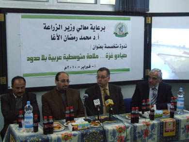 جاء ذلك خلال الندوة التي نظمتها اليوم وزارة الزراعة في مقر الإدارة العامة للثروة السمكية بعنوان "صيادو غزة ..ملاحة متوسطية عربية بلاحدود" وذلك  بحضور ممثلين عن نقابة الصيادين والجمعيات ذات العلاقة ومهندسين من الوزارة وعدد من الصيادين والمهتمين  .