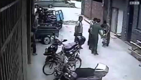 وأظهرت لقطات صورتها كاميرا مراقبة الرجال وهم يتأهبون لالتقاط الطفلة البالغة من العمر عامين ويمسكون بها.