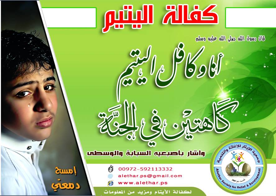 انتهت جمعية الإيثار للإغاثة والتنمية شرق خان يونس، جنوب قطاع غزة، الثلاثاء من توزيع كفالات الأيتام عن شهري مارس وأبريل، وذلك بتمويل من الجمعية الكندية لإغاثة المنكوبين وجمعية جسور الرحمة في تونس وأهل الخير في السعودية، التي يستفيد منها 65 يتيم شهريا بمبلغ  20600 شيقل.