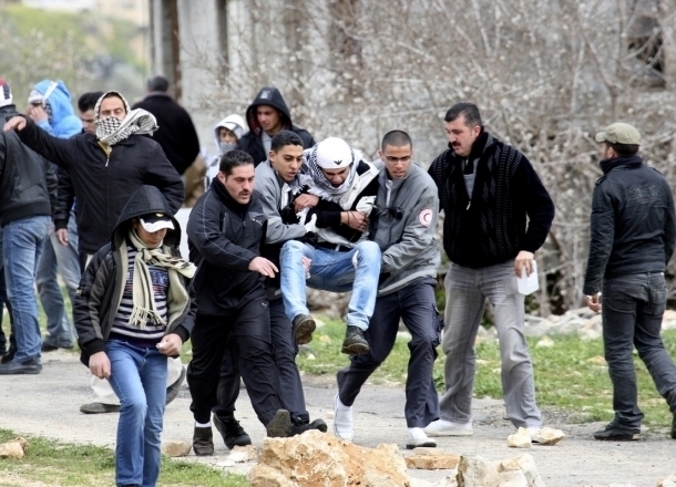 أصيبت فتاة وشاب بجروح وعدد بحالات اختناق خلال مواجهات اندلعت بين جنود الاحتلال (الإسرائيلي) وشبان فلسطينيين وسط مدينة الخليل جنوب الضفة المحتلة.