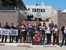 ورفع المشاركون لافتات تدين اعتقال الصحفيين بالضفة (من حقي ممارسة العمل الاعلامي بحرية و دون مضايقة او ملاحقة، بطشكم لن يوقفنا ومستمرون رغم الملاحقة والاعتقال، منا الشهيد والجريح والمعتقل لكن التغطية ستظل مستمرة).