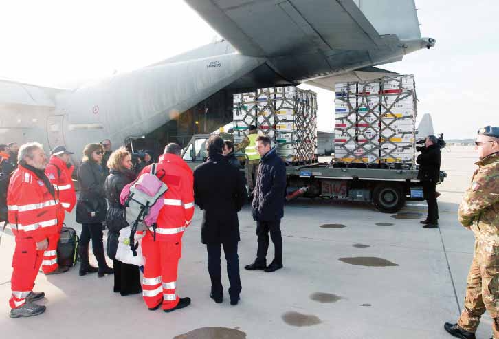 انطلقت مساء اليوم طائرة مساعدات إيطالية رسمية إغاثية وطبية إلى غزة.