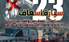 انفوجرافيك: 23 سيارة إسعاف فقط من أصل 53 تعمل بعد توقف إمدادات الإغاثة والوقود إلى غزة في أوائل مارس 03 ابريل 2025