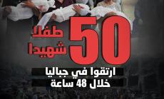 <span class="text-danger">انفوجرافيك: </span>50 طفلاً شهيدًا ارتقوا في جباليا خلال 48 ساعة انفوجرافيك