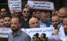شاهد| الاعتصام الحاشد بغزة ضد مسرحية انتخابات نقابة الصحفيين