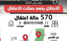 <span class="text-danger">انفوجرافيك: </span>الاحتلال يصعّد حملات الاعتقال خلال يناير