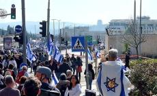 (إسرائيليون) يتظاهرون أمام الفندق الذي يتواجد فيه بلينكن
