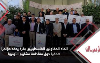اتحاد المقاولين الفلسطينيين بغزة يعقد مؤتمرا صحفيا حول مقاطعة مشاريع الأونروا