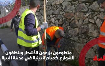#شاهد|| متطوعون يزرعون الأشجار وينظفون الشوارع كمبادرة بيئية في مدينة البيرة