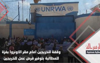 #شاهد || وقفة للخريجين امام مقر الاونروا بغزة للمطالبة بتوفير فرص عمل للخريجين