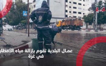 #شاهد || عمال البلدية يعملون على تصريف مياه الأمطار في مدينة غزة