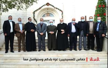 حماس تهنيء الأب جبرائيل بكنيسة دير اللاتيين